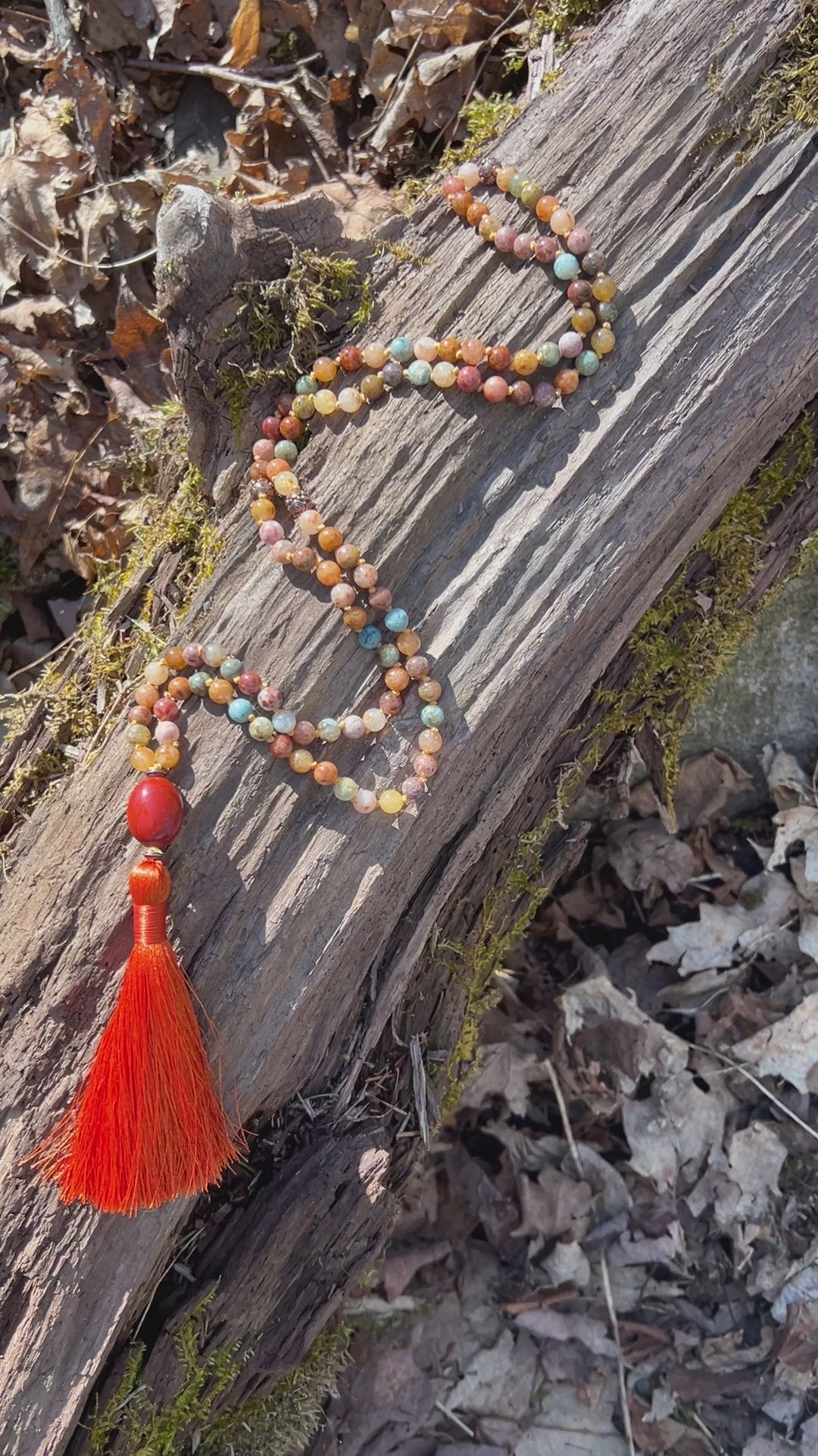 Lift Your Spirit Meditation Mala – 108 Beads of Rainbow Ocean Agate & Red Jasper